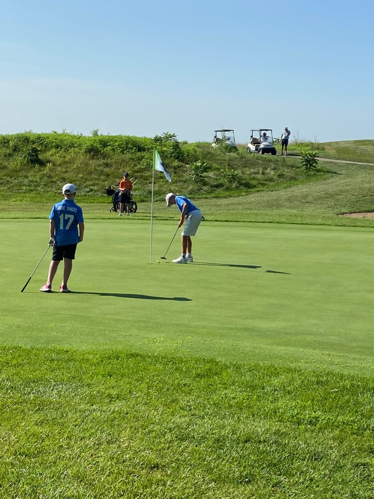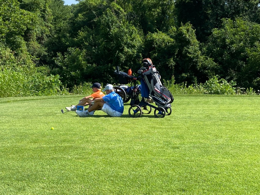 We’re 5 holes in a Brian is not real happy with his game but he’s already shot his best round ever here so let’s just focus on that. Jake is doing well and the best news is there’s no waiting today!