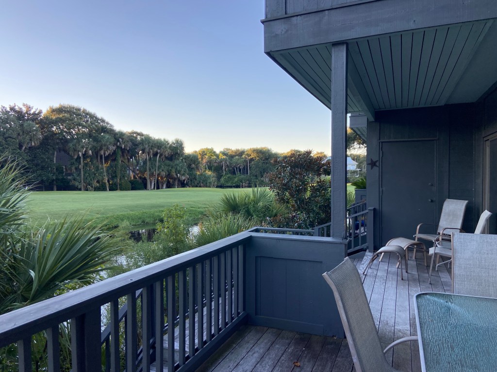 We had plenty of time so the guys showered in the locker room and we had a wonderful lunch on the terrace overlooking the ocean and 18th green. We ordered the crispy shrimp on Kevin’s (the dentist from Boston) recommendation. He was right, it was delicious! What a fun day and a great ending to this momentous trip.