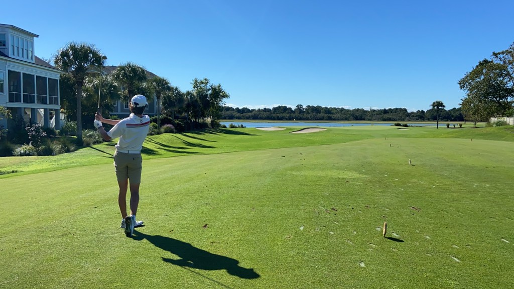 We are paired with our caddie, Henry, a young golfer from Michigan. There are two singles in our group that are paired with Kyle. It’s going to be a great day on the course! Henry strikes up conversation with Jake right away and can tell he’s a High School golfer and a tournament competitor. Turns out Henry played college golf all 4 years and spends his time caddying here 5 days a week and playing 2 or 3 times a week. He mentions he just loves the game and wants to be around it in any capacity. Not to mention he doesn’t love the cold in Michigan. A recurring theme that people here don’t like the cold. He has a helpful, positive, and easy-going demeanor. I enjoy listening to the caddies and their language and perspective.