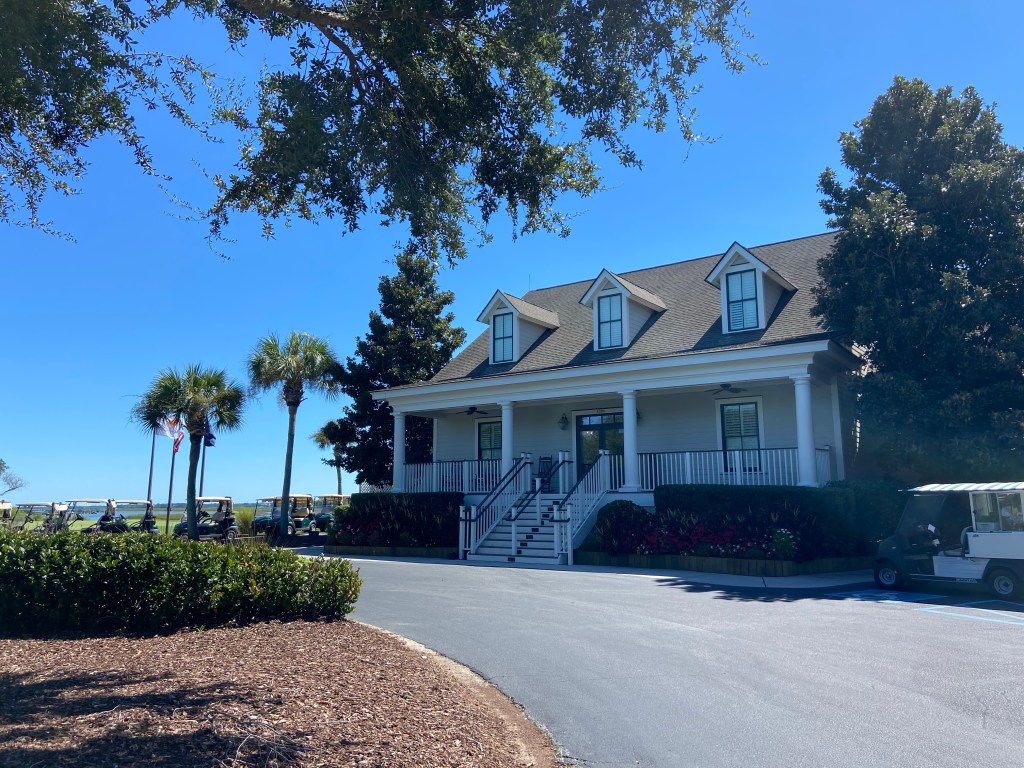 It’s a lengthy shuttle ride to the first tee and I tried to make the group late by going to the restroom. Oops…sorry guys!